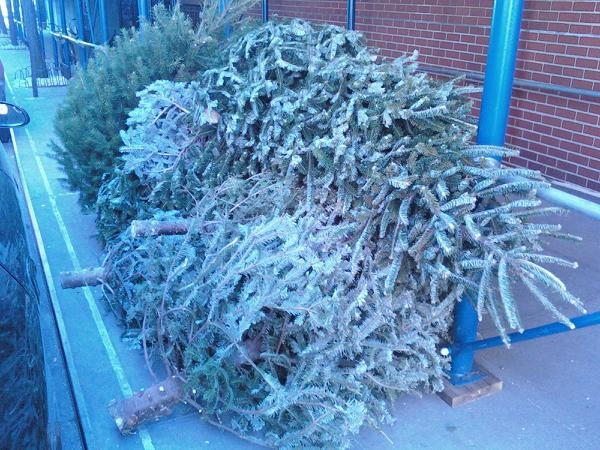 Early this morning fighting broke out on the Upper East Side when a covert ops group  “Secret Santas” made a pre-dawn raid on several stores with post-“Holiday” markdowns.  No humans were harmed, but the streets are now riddled with lifeless Christmas trees.  NYC residents cannot escape disturbing images like the one pictured left.
